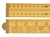 This RST 1 Metre hardwood rule folds into 4 sections by extending the brass hinges and end caps. The rule has imperial markings on one side and metric markings on the other.