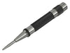 Rugged steel centre punch has a mechanism which automatically strikes a blow when downward pressure is applied. Force of blow is regulated by the adjustable knurled cap. No hammer is required.Punch length: 125mm (5 in).