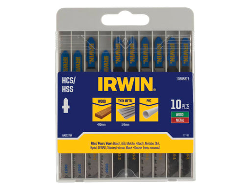 This 10 Piece IRWIN Jigsaw Blade Set contains the following:2 x 10504221 (T111C) Wood Cutting 100mm 8 tpi. 2 x 10504218 (T144D) Wood Cutting 100mm...